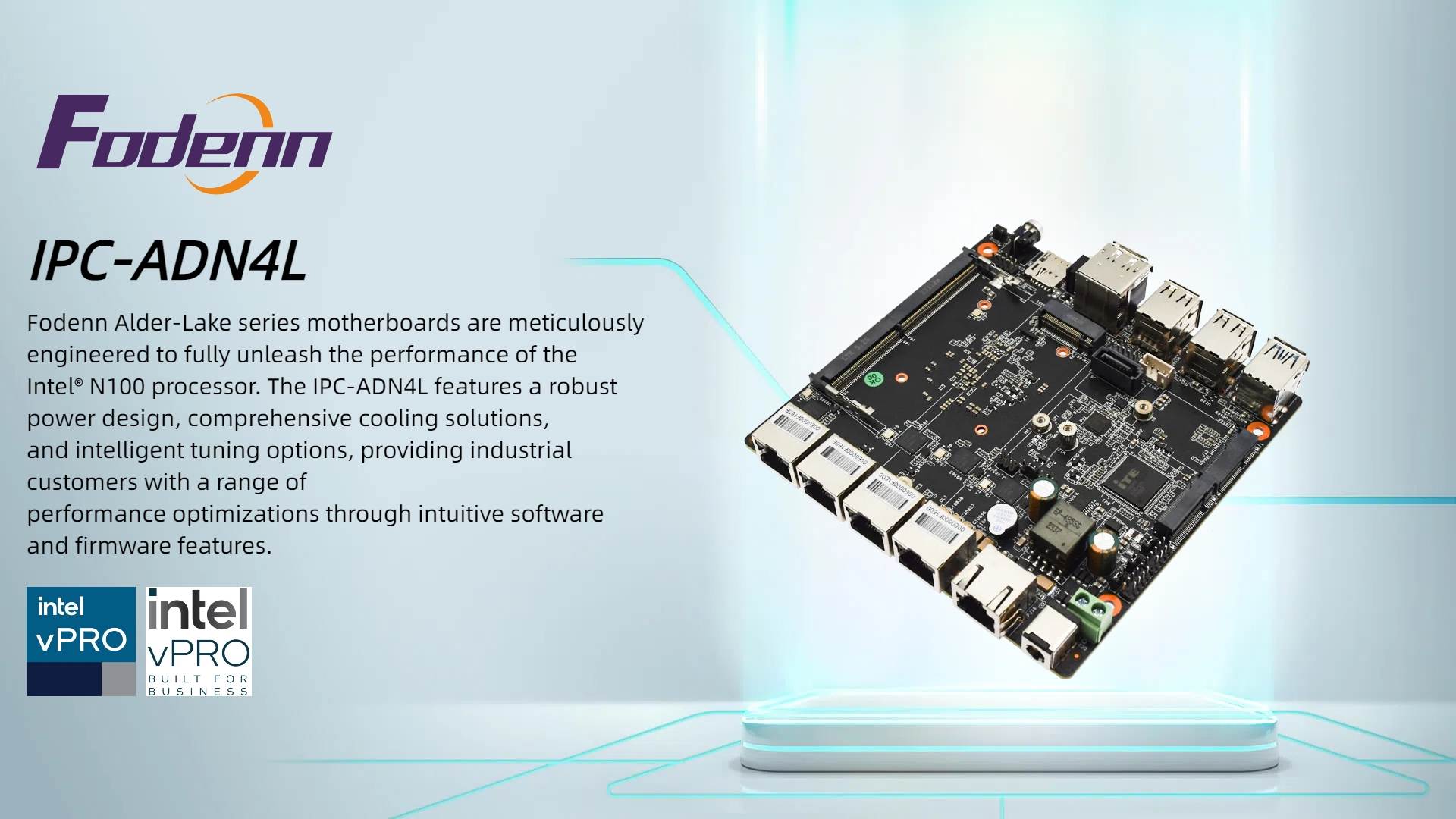 Fodenn delivers a robust selection of industrial motherboards, including compact Nano ITX and MINI ITX, and more expansive ATX and micro ATX options. These boards are optimized for AMD CPUs and Intel CPUs, such as Alder Lake N95/N100, Elkhart Lake, Tiger Lake and etc, ensuring high performance and reliability. Tailored for OEM and ODM needs, Fodenn's custom motherboards offer specialized configurations to fit unique industrial applications.